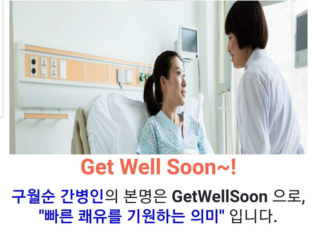 겟웰순(GetWellSoon)은 환자에게 "빠른 쾌유를 바랍니다" "곧 좋아질거야~!" 의 의미로 사용하는데요..